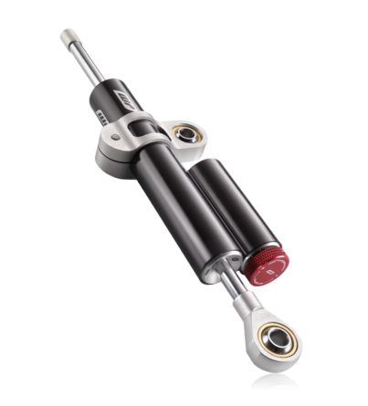 Steering damper with fine individual adjustment, purpose-built for race-oriented motorcyclists and professional road racers. Wider setting range than the standard WP steering damper. Extension of the setting range into the harder levels. Turning knob to operate 32 settings while in motion.