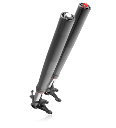 Fork designed for manufacturer’s serial production, time-tested and proven. Available as conventional construction ( compression level adjustment at base of forkleg while stationary) or the “split” design where compression level and rebound damping are adjusted in a few seconds on the fork tubes while riding.
