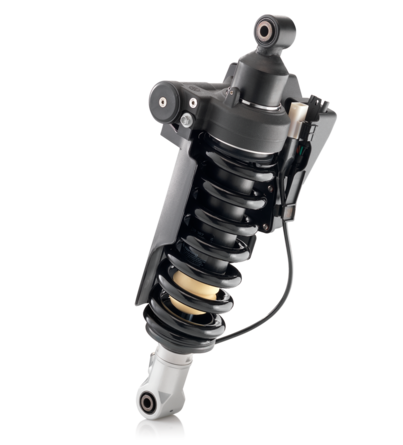 Shock absorber with electronic adjustment of the damping system (electronic damping system= EDS). For any model of motorcycle where the shocks are attached directly onto the swing arm. Easy to operate control switch on handlebar: electronic adjustment for damping levels – normal, comfort or sport – and for load conditions – 1 person, 2 persons or 1 person with luggage.